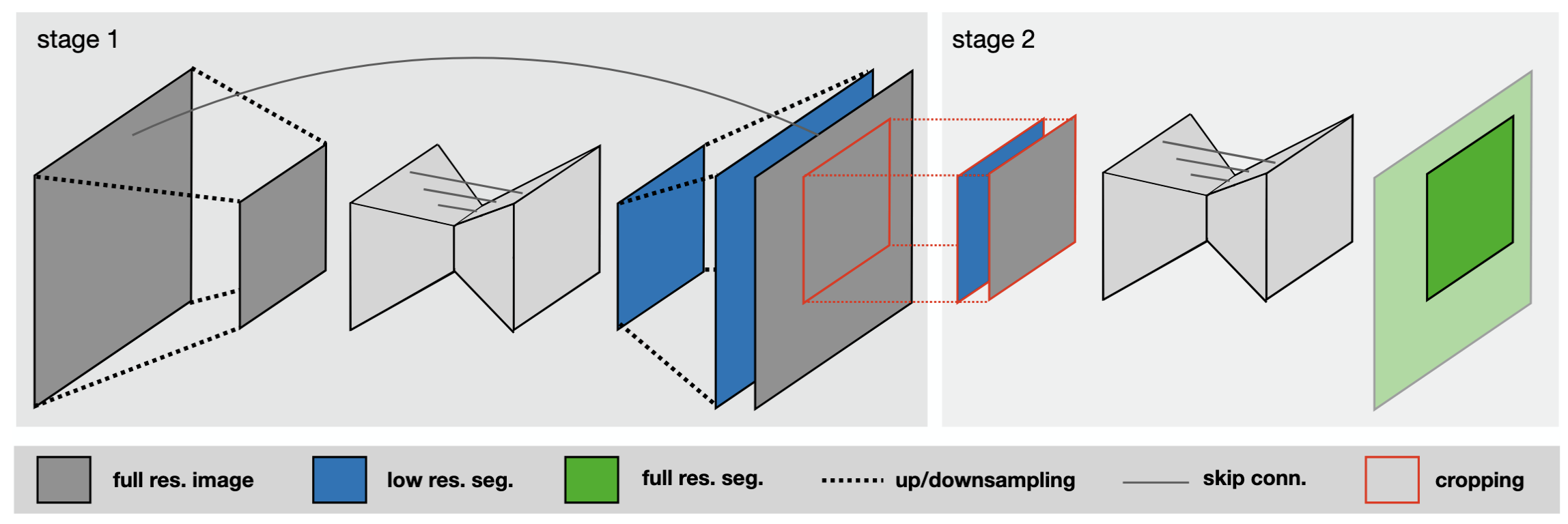 The 3D Cascade ultimate move: If the target organ is too gigantic (like the entire lung) but the hardware only allows cutting tiny patch sizes, the model will go "blind", like a blind man touching an elephant. At this time, nnU-Net automatically summons the 3D Cascade U-Net model (sequential network). Stage 1 will learn on a downsampled/blurred image to grasp the "overall map". Stage 2 uses that map as a "locator" to paint detailed boundaries on the extremely sharp original resolution image.All these headache-inducing calculations are automatically summarized and saved by nnU-Net into a file named plans.json so you can review them if you are curious!
