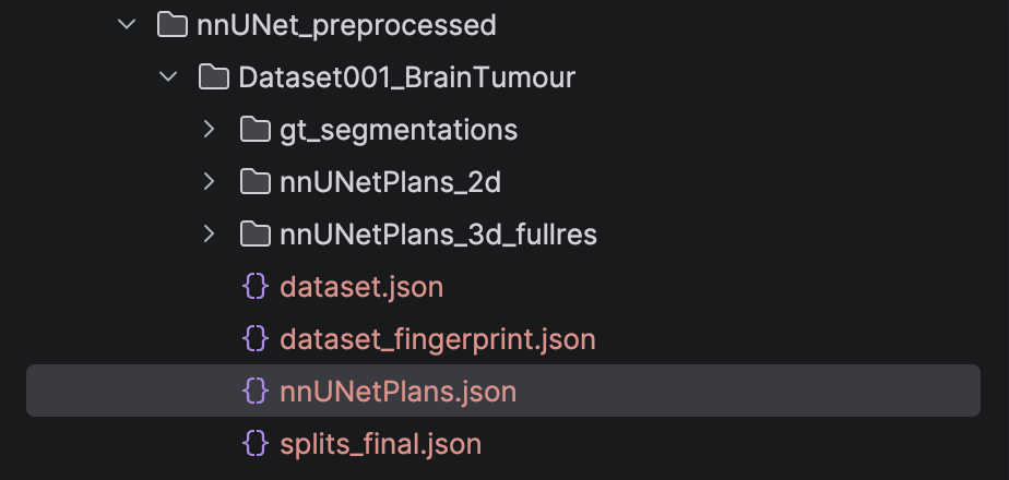After running the above command, we will have the preprocessed images, the data fingerprint, and the plans files for the model to train saved in the nnUNet_preprocessed folder.