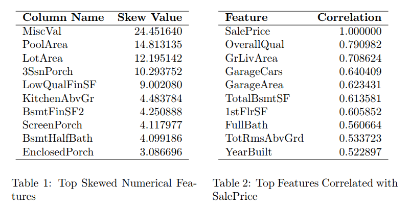 Dựa vào bảng 1, nhóm nhận thấy rằng độ lệch tuyệt đối của phân phối mục tiêu đang có giá trị rất lớn trên một số đặc trưng. Chính vì vậy, nhóm đề xuất sử dụng phép biến đổi $\text{Yeo-Johnson}$ và $\text{log1p}$ lên các đặc trưng có $|\text{skew}| > 1$ để ổn định phương sai và giảm độ lệch (skewness) của dữ liệu, giúp mô hình Machine Learning hoạt động hiệu quả hơn.