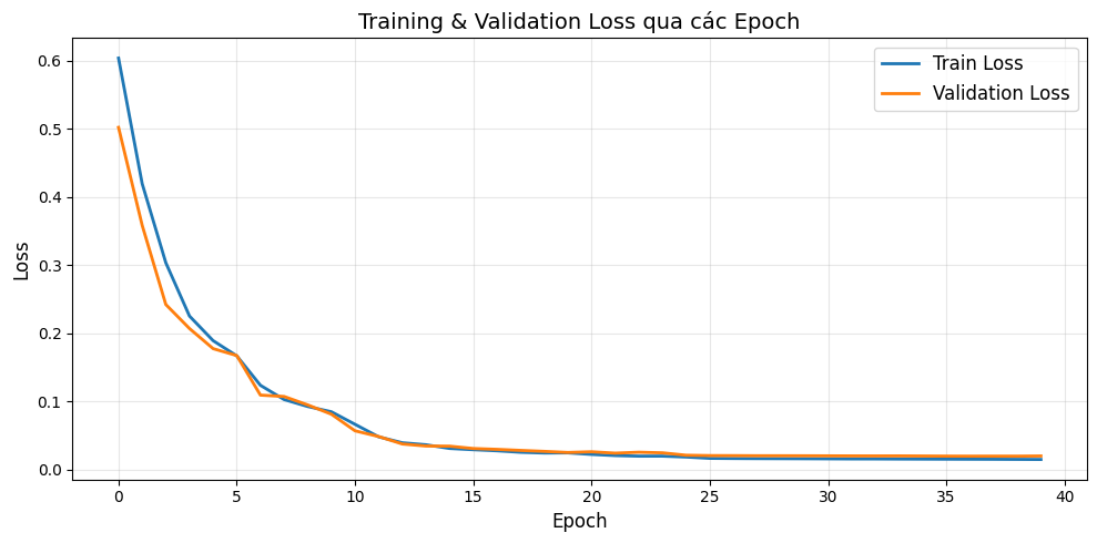 plt.title('Training & Validation Loss qua các Epoch', fontsize=14)