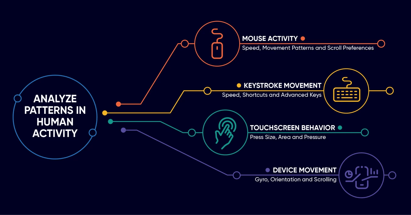 Figure 5.2. Behavioral biometric indicators used in identity authentication; source: BioCatch
