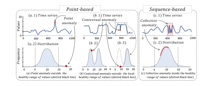 Về mặt hình thức, có thể phân loại bất thường trong chuỗi thời gian thành ba dạng chính: bất thường điểm (point anomalies), bất thường theo ngữ cảnh (contextual anomalies) và bất thường tập thể (collective anomalies).