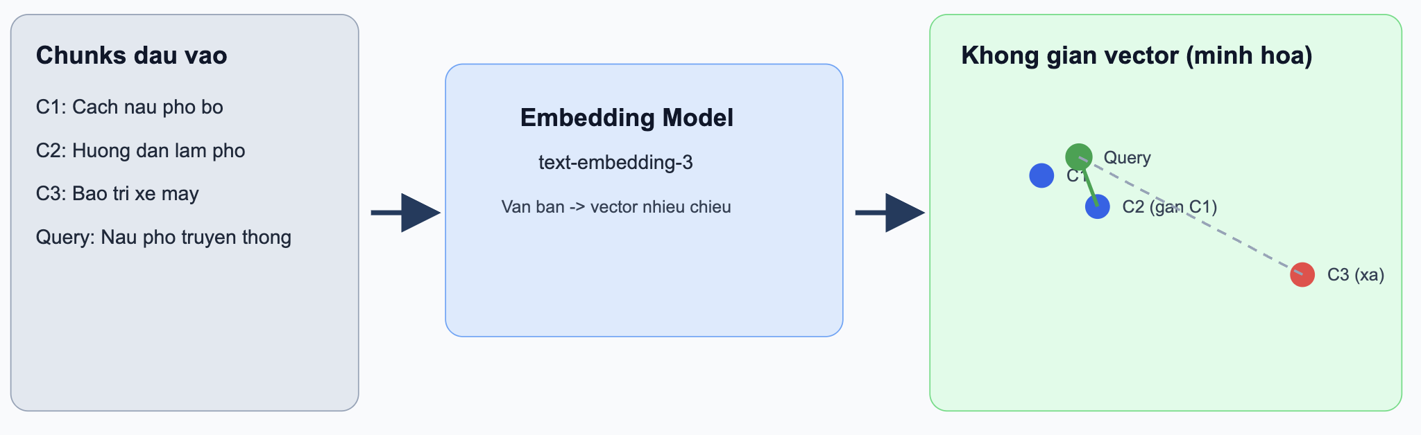 To do that, both queries and documents are converted into embeddings - dense vectors that encode semantic information. In that representation space, texts with similar meaning are placed close together even when they use different words.