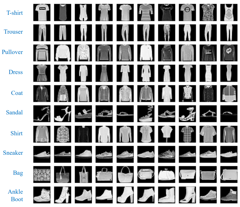 Fashion MNIST là một bộ sưu tập khổng lồ gồm 70.000 hình ảnh các mặt hàng thời trang và phụ kiện. Cụ thể: