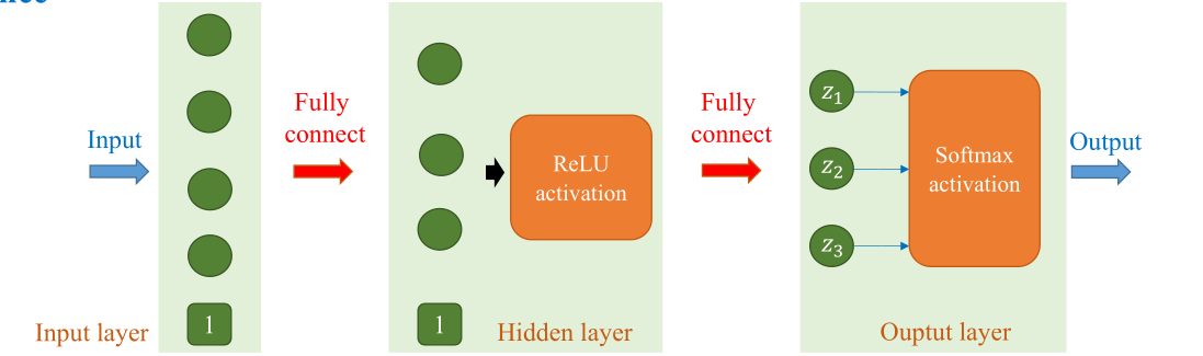 Trong đó, sự khác biệt với bài toán phân loại là lớp đầu ra không sử dụng hàm kích hoạt.