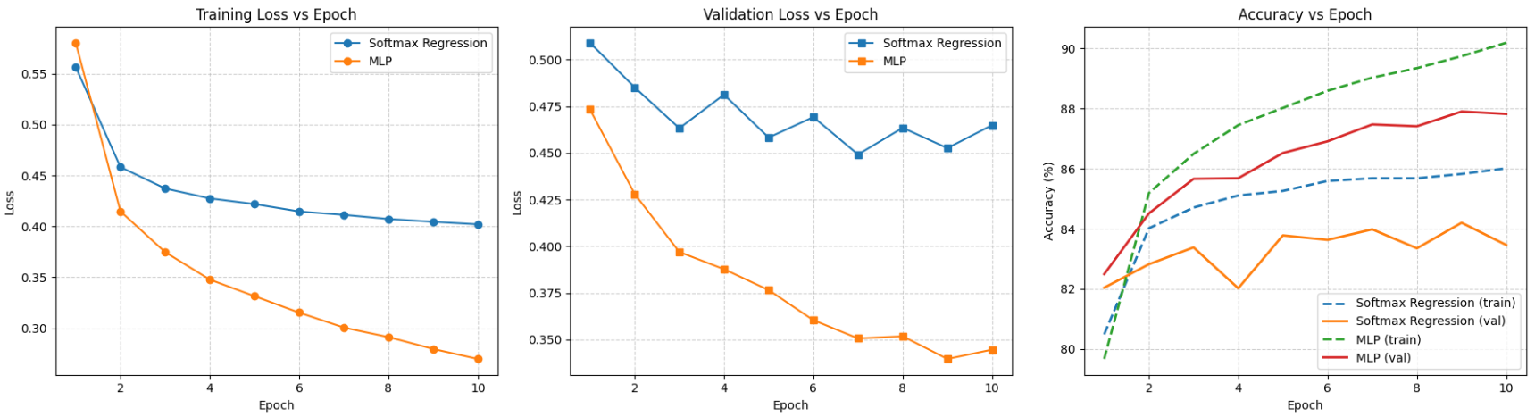 Chúng ta sử dụng bộ dữ liệu Fashion để thử nghiệm và đánh giá cho hai mô hình Softmax Regression và Multilayer Perceptron, vì đây là một bộ dữ liệu chuẩn được sử dụng rộng rãi để kiểm tra hiệu suất của các thuật toán phân loại hình ảnh cơ bản.
