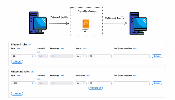 - Inbound Rules: Xác định traffic nào được phép đi vào instance.