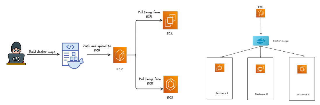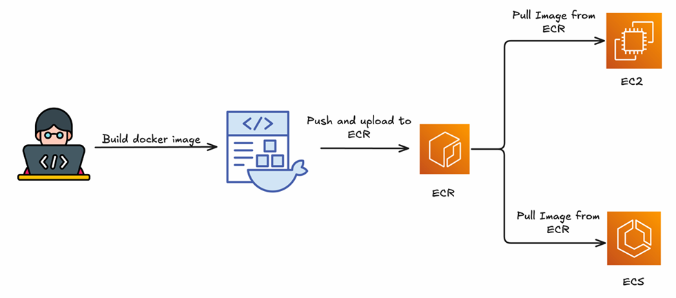 Thay vì phải thiết lập một registry riêng (Docker Hub, Harbor,...), ECR thường được sử dụng để