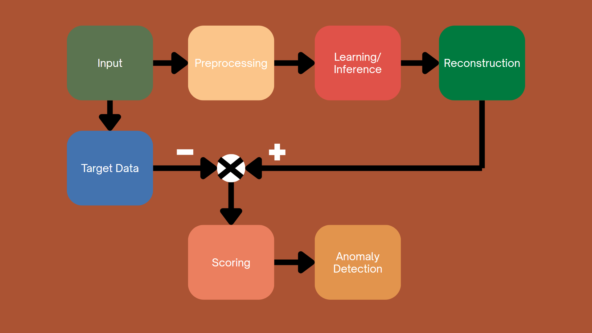 Cụ thể, để phát hiện bất thường bạn có thể vừa sử dụng kết quả từ các mô hình tái tạo; vừa sử dụng kết quả từ mô hình dự đoán; và vừa sử dụng kết quả khi cho cho dữ liệu chạy lần lượt qua mô hình dự đoán, rồi tới mô hình tái tạo để tăng cường cho kết quả từ mô hình dự đoán trước đó.